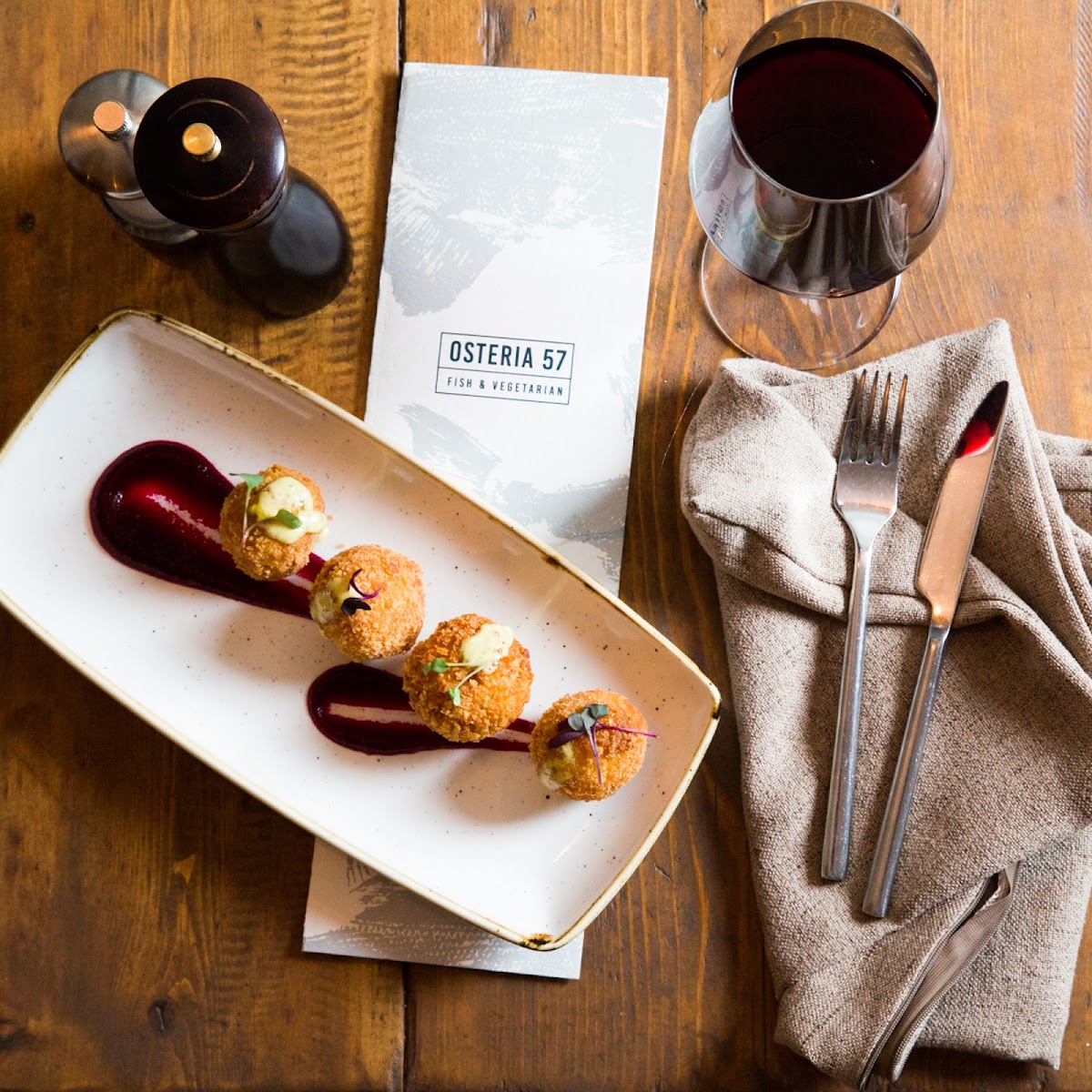 My first visit to Osteria 57 was in February of 2023, as the ending to a third date with my past, present and future obsession. She had the cacio e pepe. I had the night's special which was a dish with scallops. We dined in one of the restaurant's cabins despite it being a remarkably cold night. The cabin was heated but it was barely enough to overcome the frigid outdoor atmosphere -- not the restaurant's fault. She and I found ways to warm one another, and the food surely assisted in maintaining our relative comfort. The cacio e pepe in particular left an impression. So on our second visit, more than a year later, we dined indoors and both ordered the cacio e pepe. Again, she was radiant, and the food and the service were top notch. We don't eat at Osteria 57 regularly but it is in some sense "our place" and we have been enamored with our experience there each time.